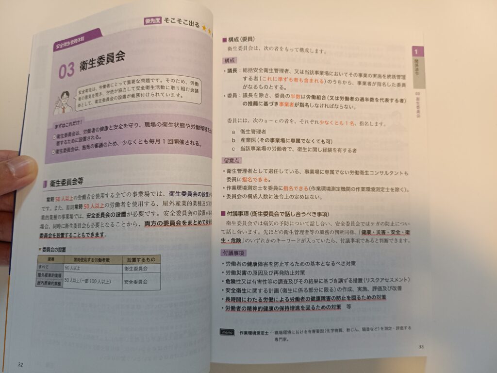 「出る順でうかるテキスト」というコンセプトのため、衛生管理者資格の知識の網羅性という点では少し弱いテキストだと感じます。